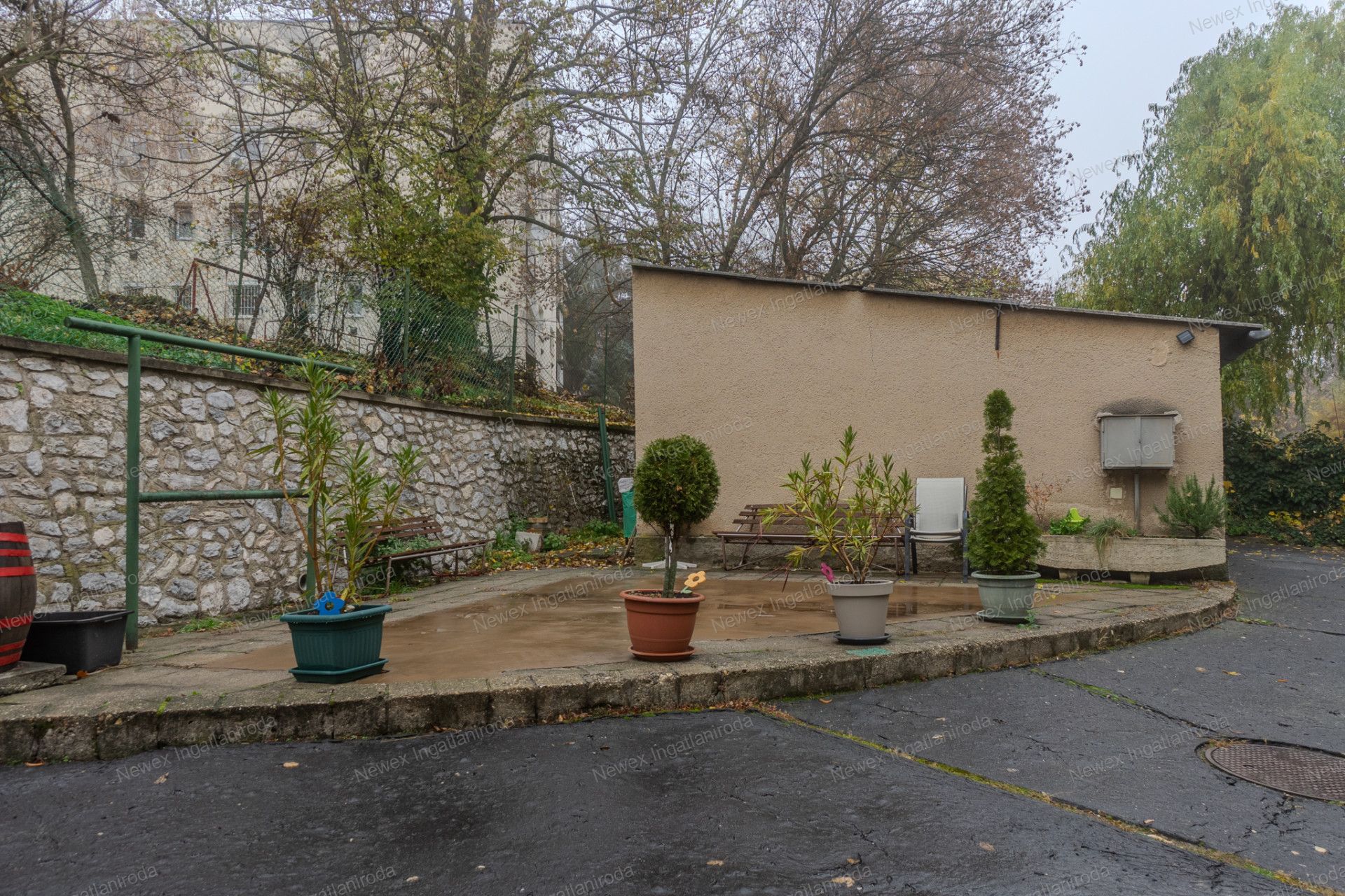A társasház zárt udvarral rendelkezik, elektromos kapuval, ahol egy kialakított pihenőrész is helyet kapott — tökéletes hely kikapcsolódáshoz.