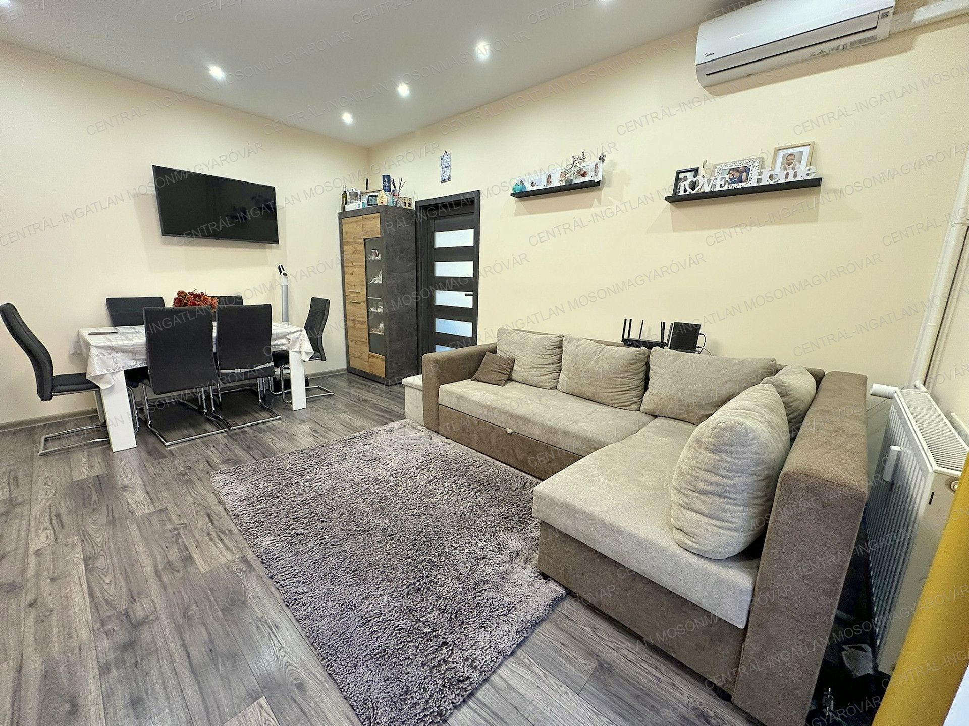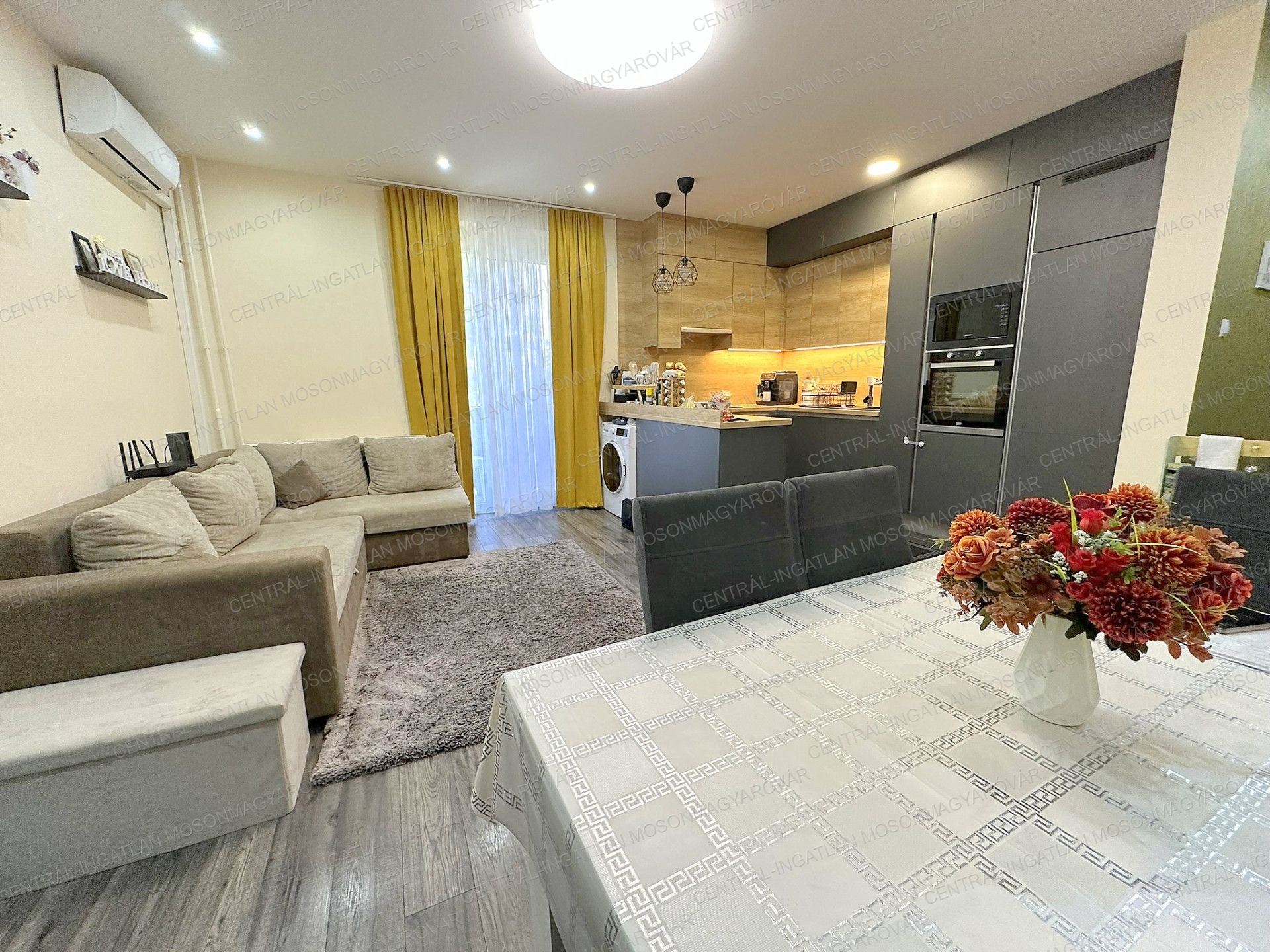 - A nappaliban egy hűtő-fűtő klíma is felszerelésre került a maximális komfort biztosítására. A lakásnak 3 fázisú áramellátása van, így bátran működtethető egyszerre minden elektromos fogyasztó.
