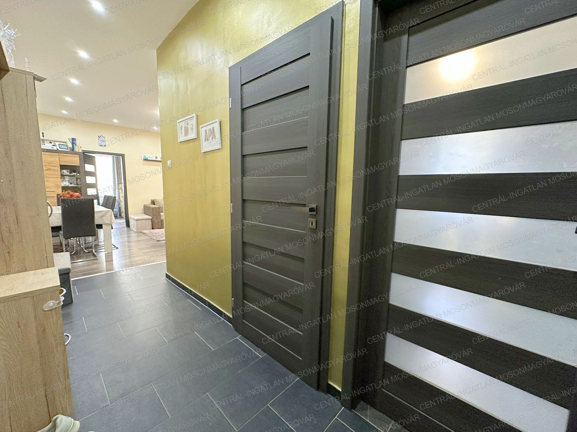 - A előszobában, fürdőben, wc-ben és a konyharészen járólap burkolás készült. A nappaliban és a szobákban laminált padló található.