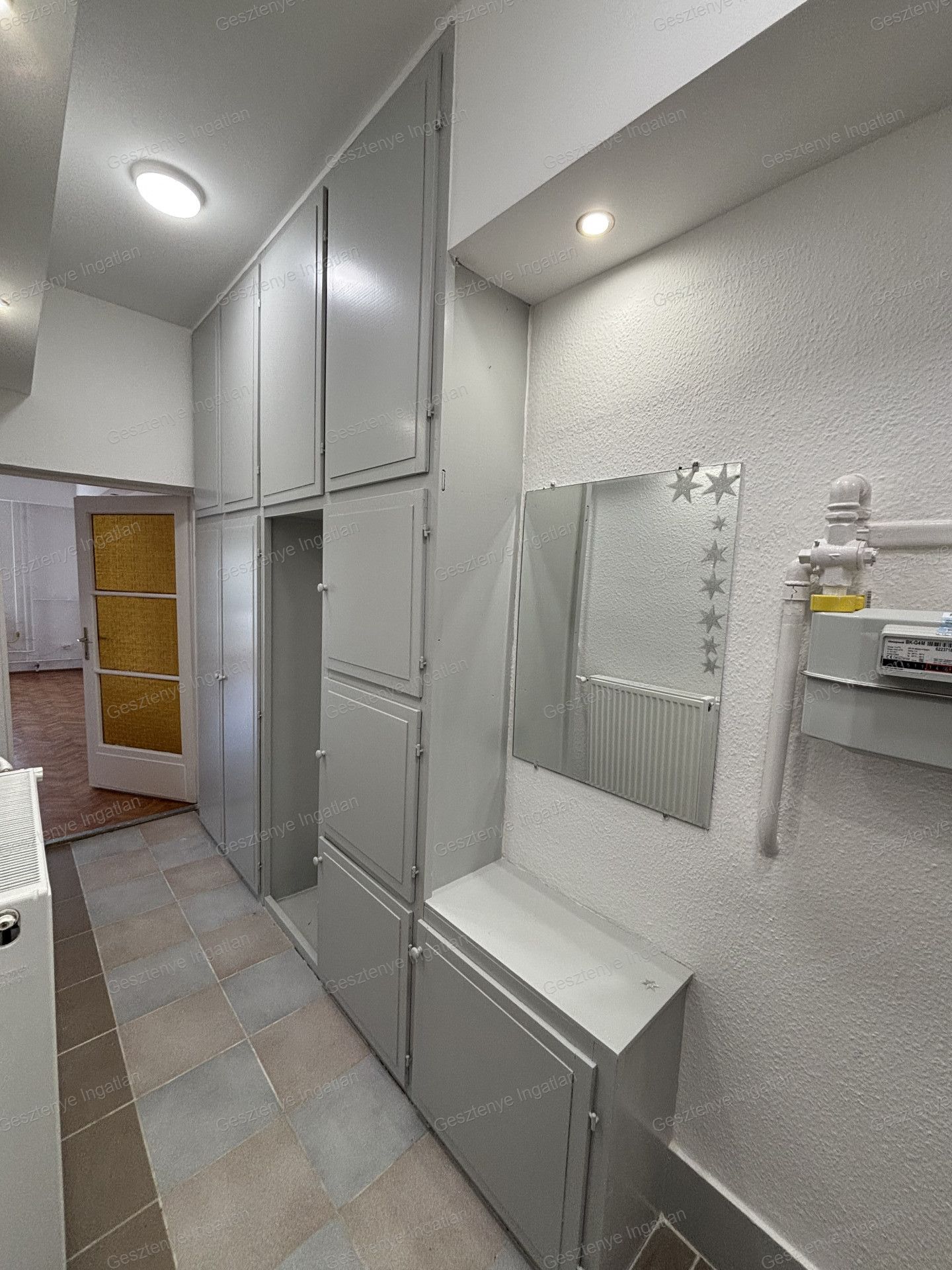 - Beépített szekrény, amely praktikus és esztétikus tárolóhelyet nyújt