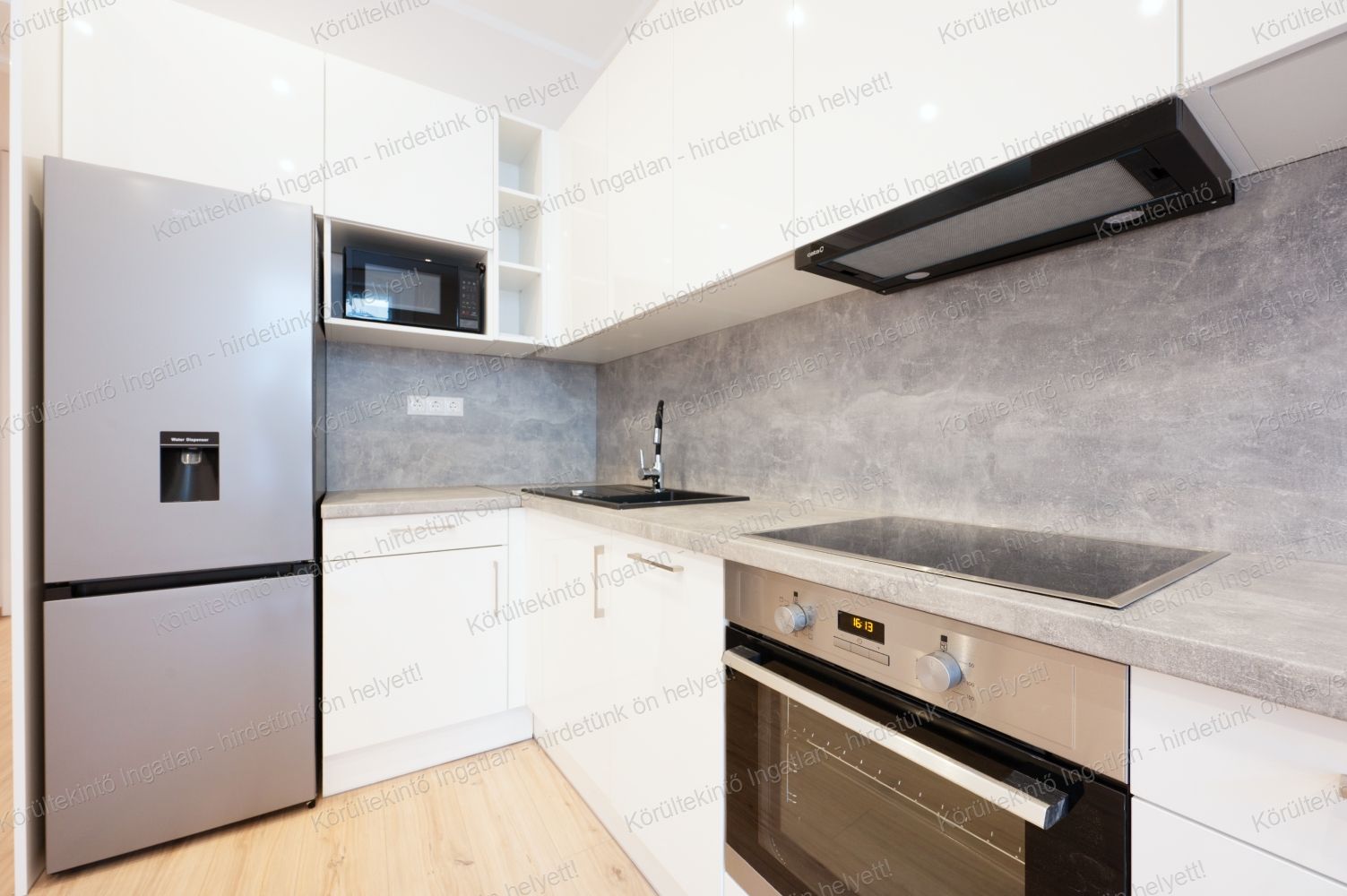 • Amerikai konyhás nappali, modern, gépesített konyhával