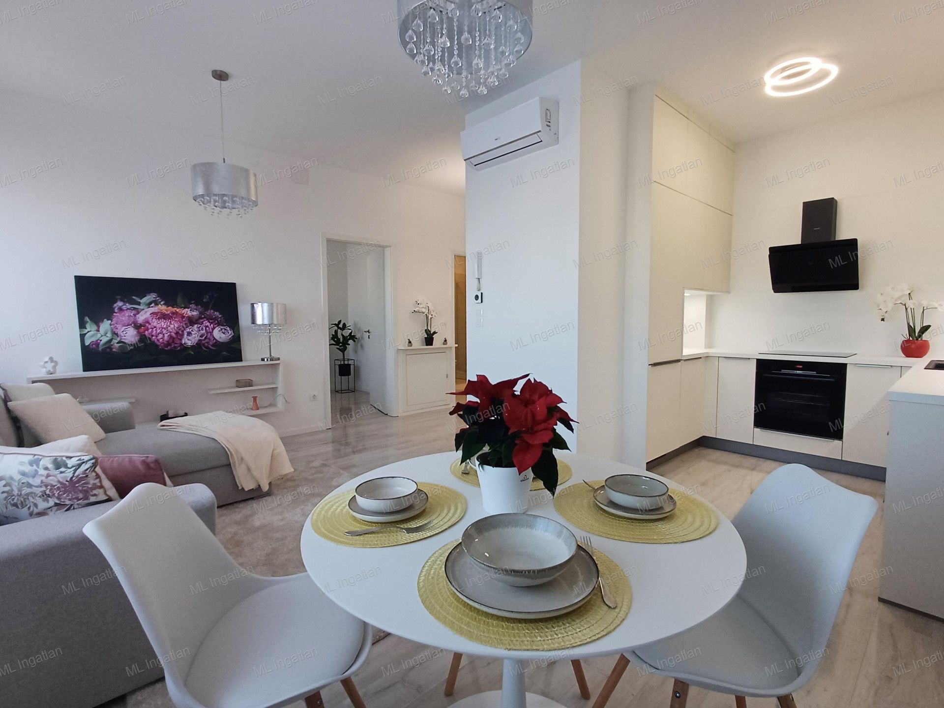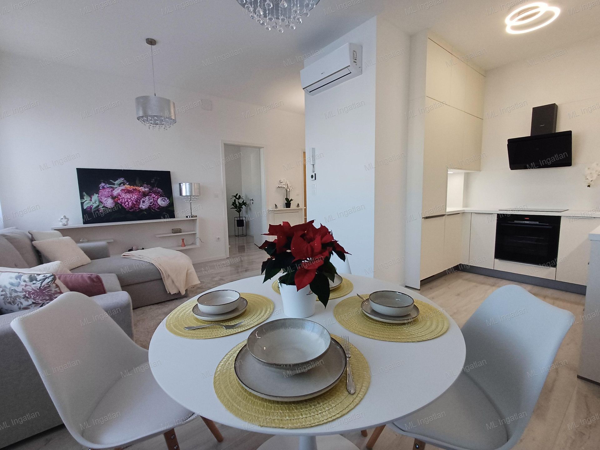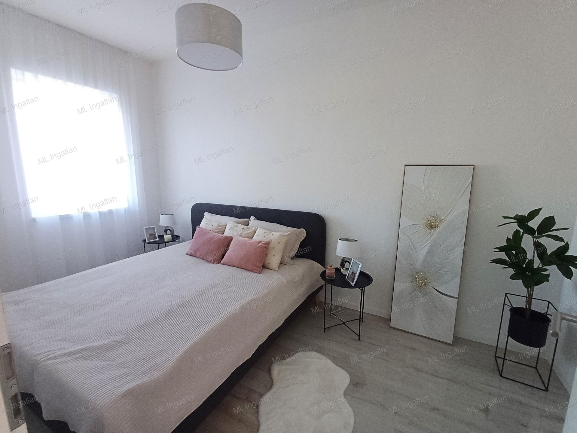 A lakás 2025-ben készült el, 61 négyzetméteres, dél-keleti tájolású, ami egész nap fényárban úszik. A csendes és intim hangulatú erkély a lakópark belsejébe, a Fő tér irányába néz. A nappali és a két hálószoba is a belső parkoló felé tájolódik.