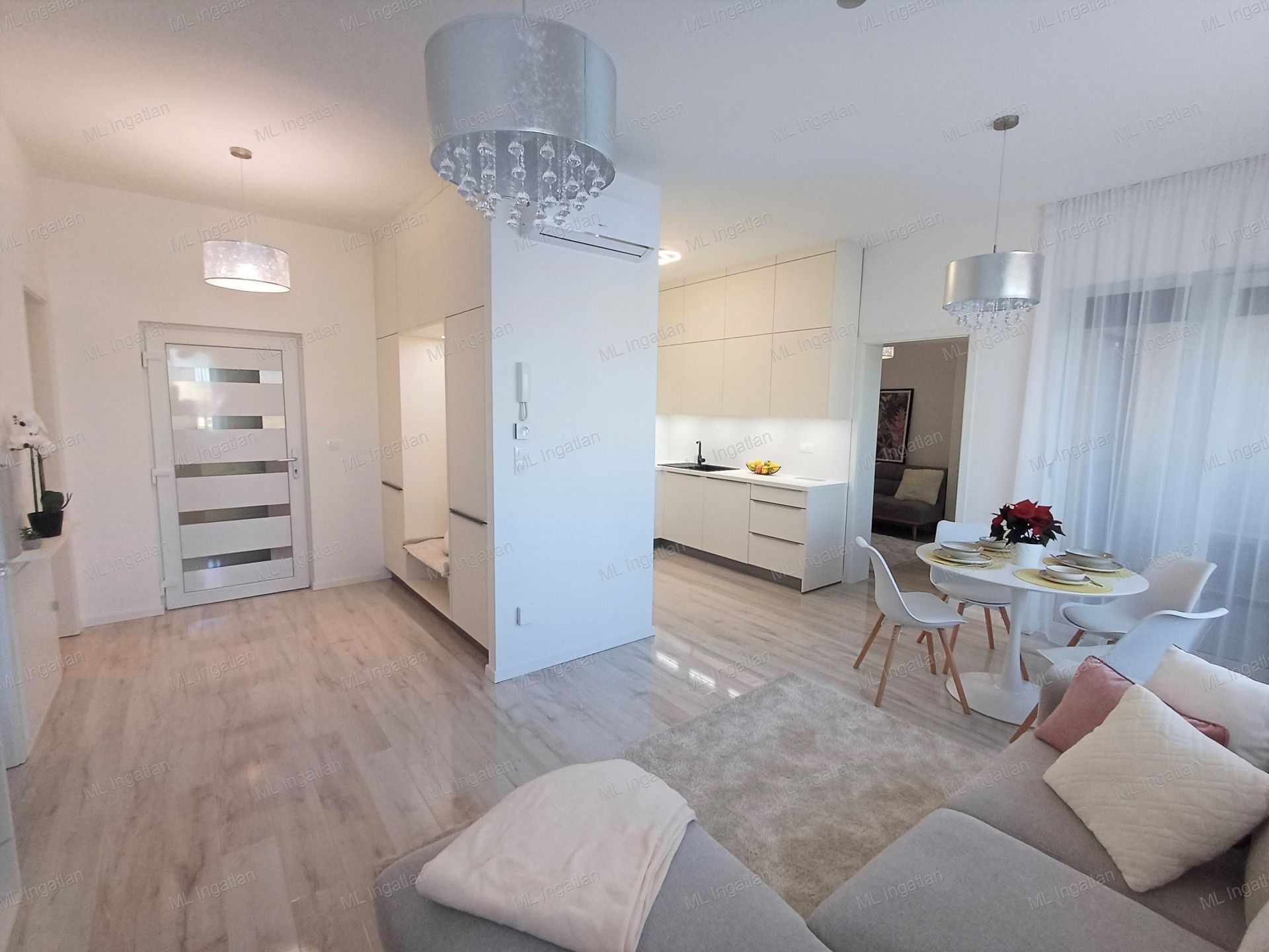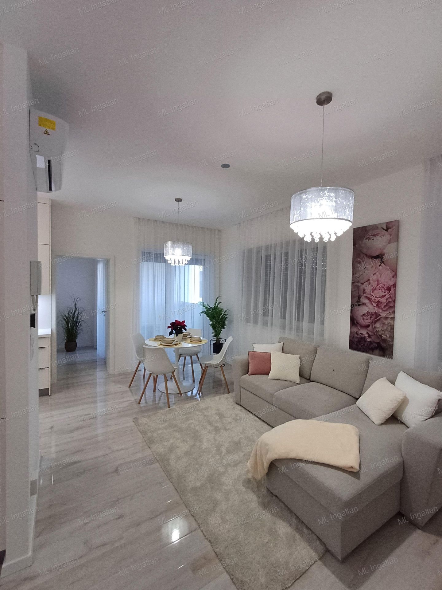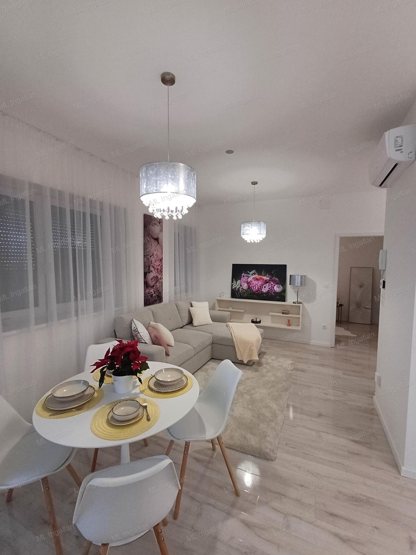 A lakás 2025-ben készült el, 61 négyzetméteres, dél-keleti tájolású, ami egész nap fényárban úszik. A csendes és intim hangulatú erkély a lakópark belsejébe, a Fő tér irányába néz. A nappali és a két hálószoba is a belső parkoló felé tájolódik.