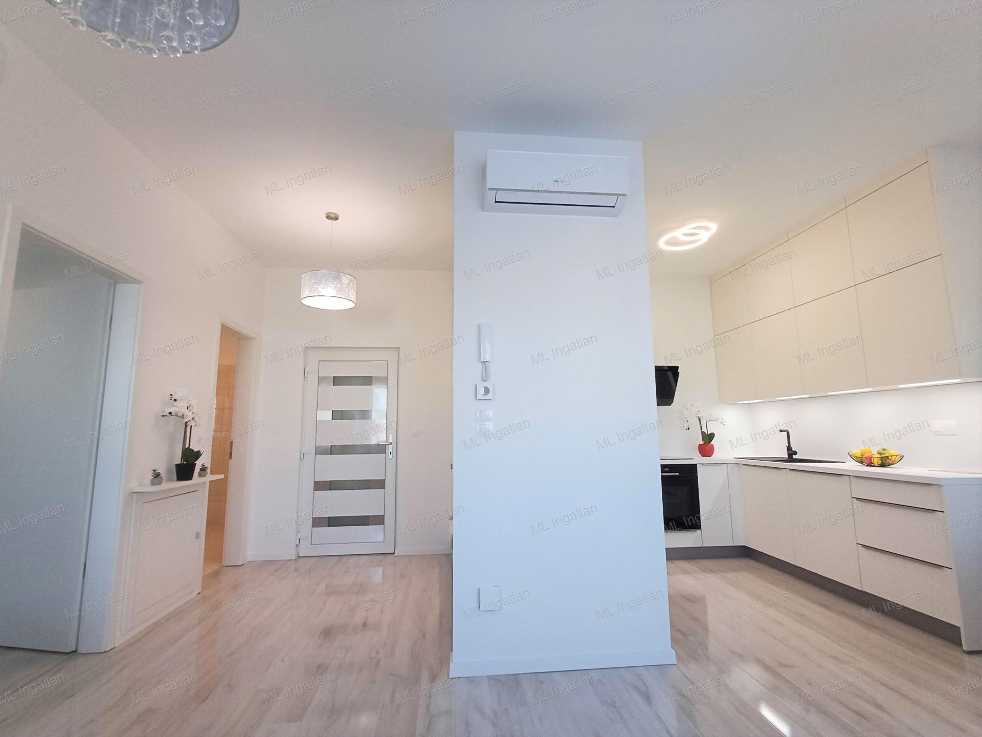 A lakás konyhabútort is tartalmaz, ami egyedi tervezésű és kivitelezésű selyemfényű fronttal készült. A konyha Bosch gépekkel felszerelt: sütő- és főzőlappal, mosogatógéppel, három rekeszes fagyasztóval ellátott hűtővel, páraelszívóval. Mindezeket tartalmazza a lakás ára. Az ingatlanban a hűtő-fűtő klíma növeli a komfortérzetet.