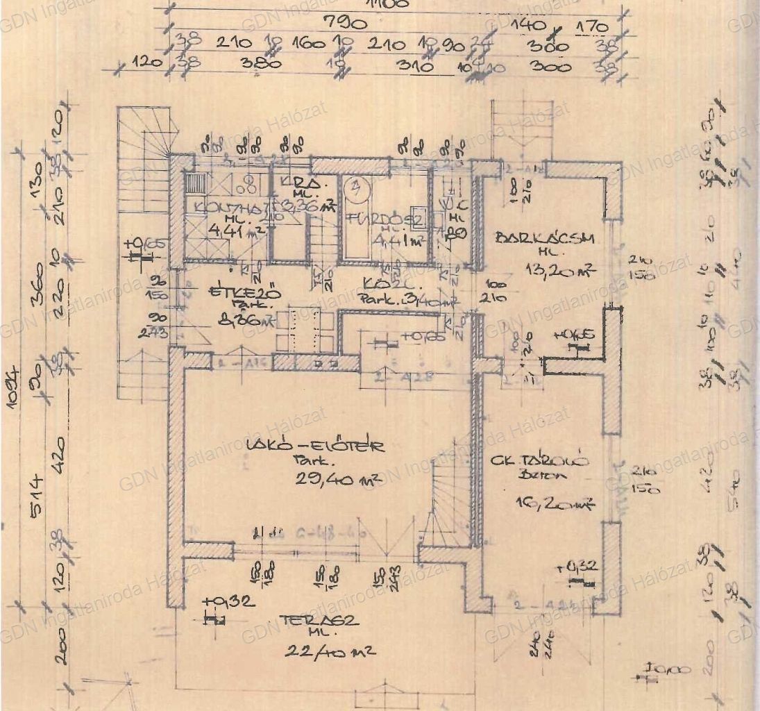 - Földszint: tágas nappali működő rusztikus kandallóval, étkező, konyha, fürdő, külön WC, műhely, garázs és pincelejáró.