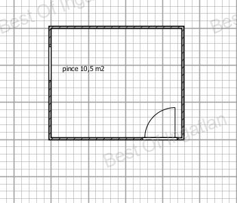 A kisebb épület 16 m2-es, alatta egy 8 m2-es pincével.
