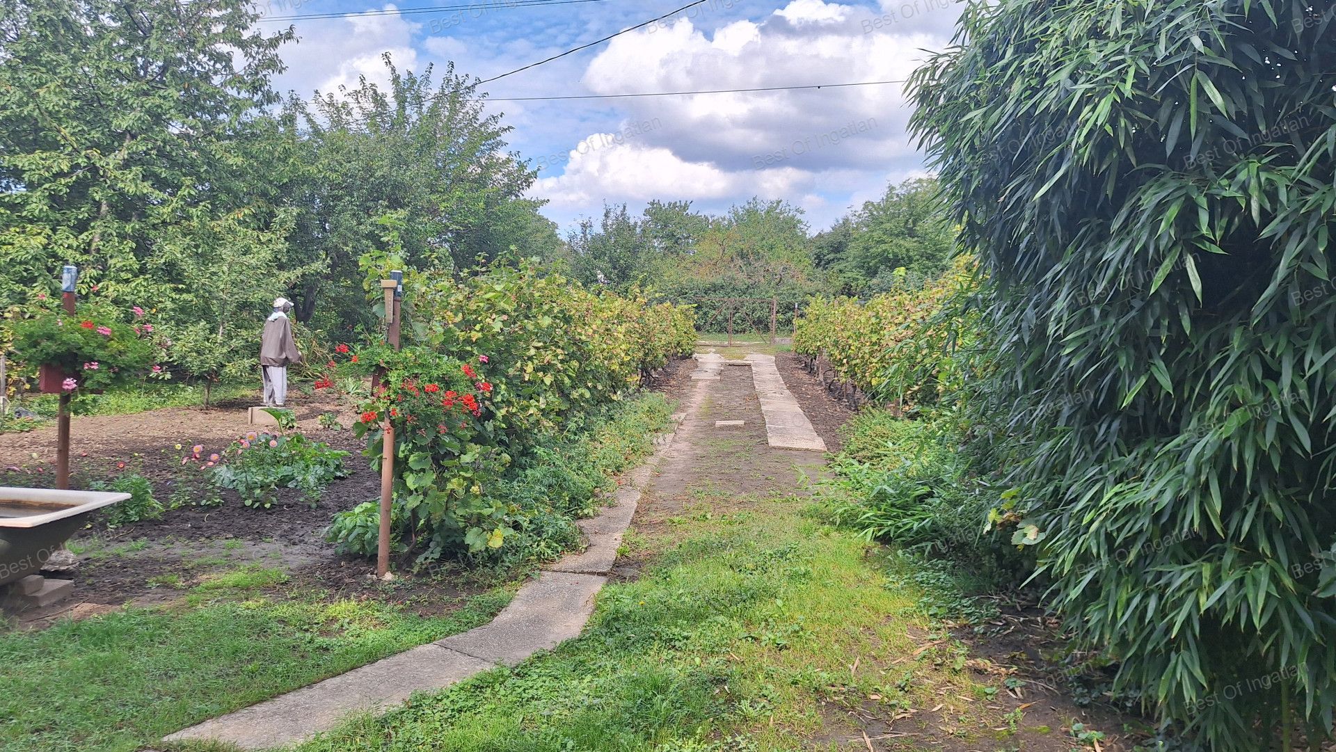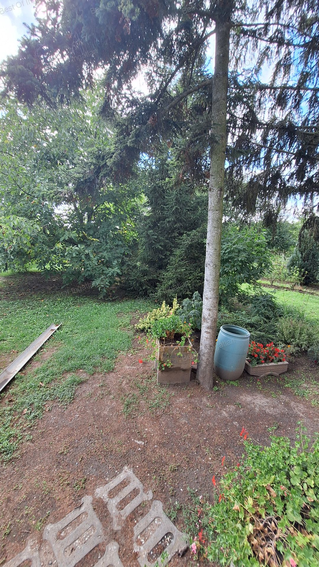 A kert szépen ápolt, szőlővel telepített, de veteményesnek is van itt elég terület. Termő fügebokrok, árnyat nyújtó fenyők és diófák alatt pihenhet, ha kikapcsolódásra vágyik a jövőbeli tulajdonosa.