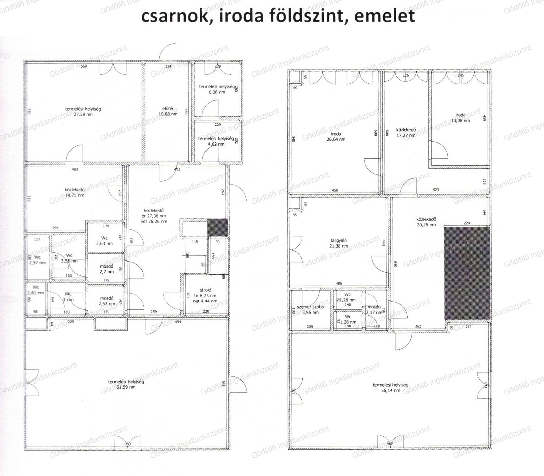 A gyártócsarnokban két daru üzemel, az emeleti irodákból kiválóan belátható az egész üzem. Kiépített kamerarendszerrel, led világításokkal felszerelt.