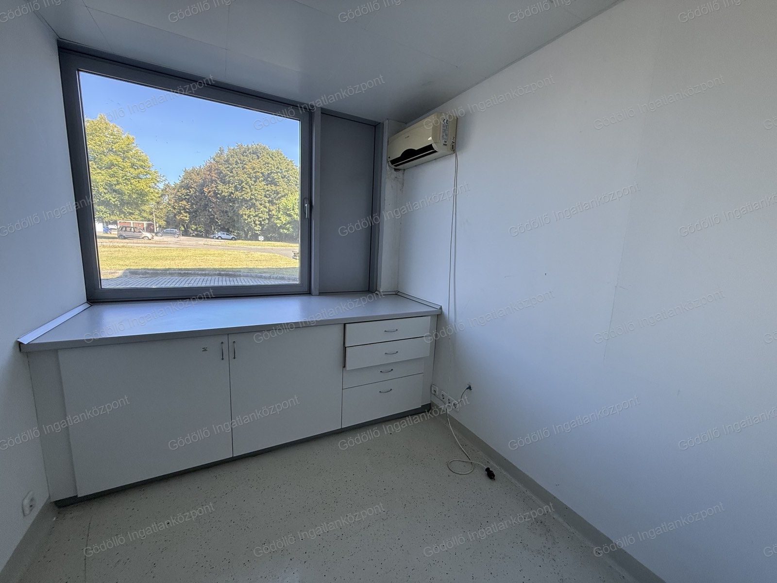 Az irodaház földszintjén öltöző, étkező, szociális helyiségek, raktárak, emeleten irodák - tárgyalók kaptak helyet, konyhával, mosdókkal.
